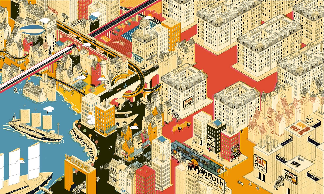 As if we didn’t have enough on our plate! It seems the climate is going to be even more bothersome in the not too distant future. I’ve been working with a scientist and a science-fiction author on a new podcast called C.Y.O.topia (choose your own topia). The premise of the podcast is to present two alternate realities of 2050; called Carrot world and Stick world according to the ideological policies adopted. In each reality, humanity has been able to restrict the increase in average global temperature to only 1.5 degrees C, which is an optimistic projection. The difference between the realities is the means by which we achieve that temperature increase. In one reality, we achieve it by cooperation, government relief, restructuring the tax system and real incentives to make better choices. The other reality is unstructured, chaotic and polarised; a rough projection of our current economic model. My job for the podcast is to illustrate the two different realities. We wanted to capture a city in 2050 and have a look at how it would function. We chose an Edinburgh analog because that’s where we are based.